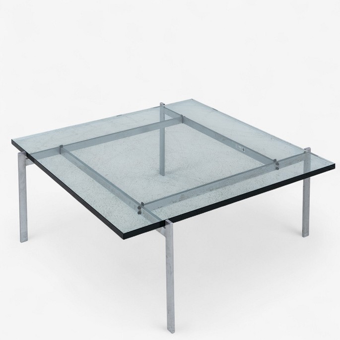PK 61 - Coffee table with glass top on steel frame. Manufacturer's mark.