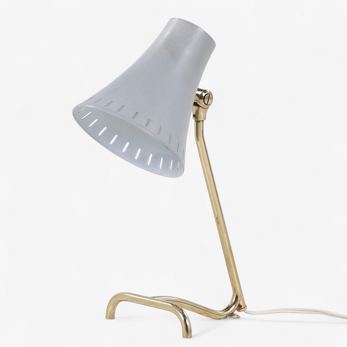 Model 8256 - Table lamp with brass frame and grey lacquered metal shade. From the 1950s.