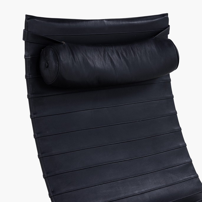 PK 20 - Lænestol i originalt sort læder med nakkehynde og stel af fjederstål. Formgivet i 1968.