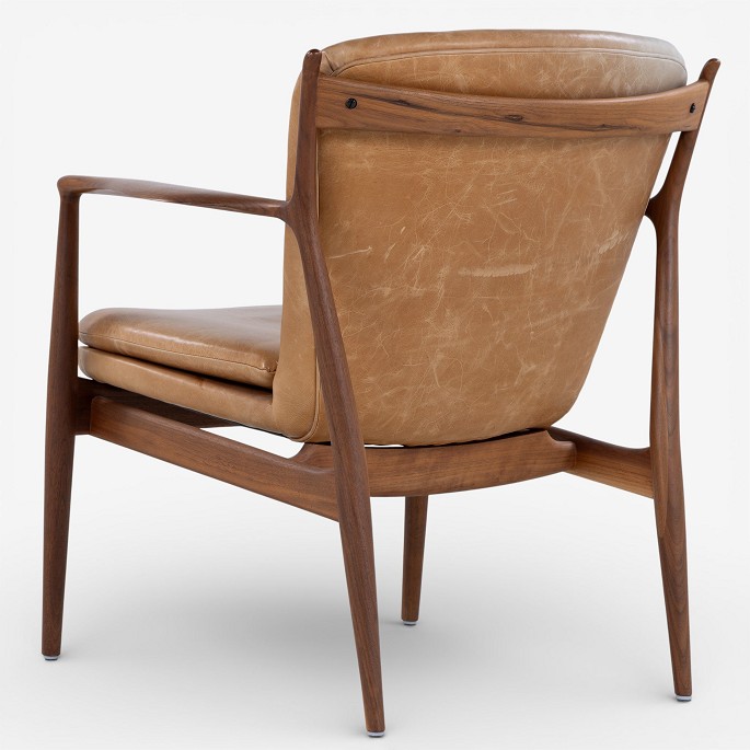 FJ 51 - Pair of 'Delegate Chair' armchairs in walnut and patinated natural leather. Designed in 1951.