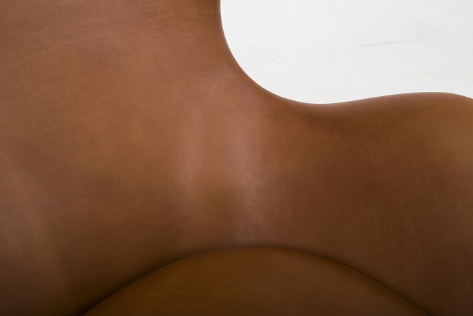 AJ 3316 - Reupholstered "The Egg" in KLASSIK Cognac leather with new foot. Shown with leather grease.