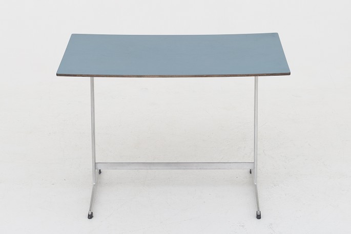 Coffee table on shaker base of steel and top in blue formica. From the SAS Hotel and designed in 1958