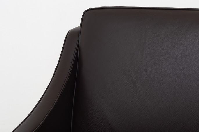 BM 2207 - Reupholstered easy chair in Paris Brown leather and legs of teak. We can offer upholstery of the chair in fabric or leather of your choice. Please contact us for further information.