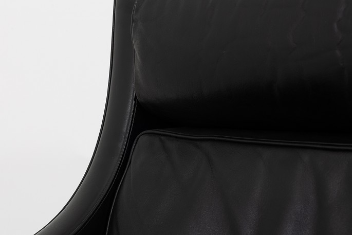 BM 2204 - Nybetrukket øreklapstol med sort Klassik-læder. KLASSIK tilbyder polstring af stolen med stof eller læder efter eget ønske.