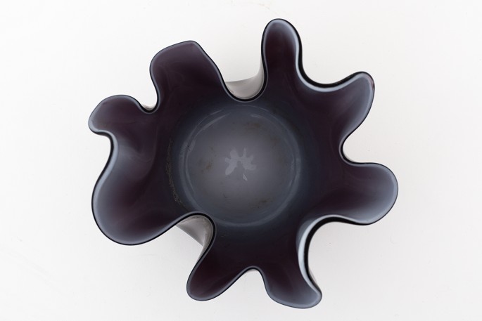 Fazzoletto vase i mørkelilla glas fra 1950'erne. Model: Handkerchief.