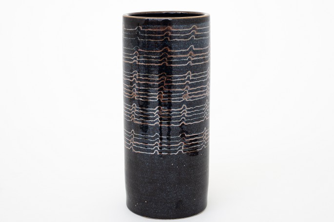 Cylinder vase in stoneware with iron glaze. 'Opus Scolasticum'