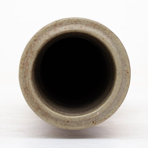 Large vase in stoneware with grey/green and blue glaze.