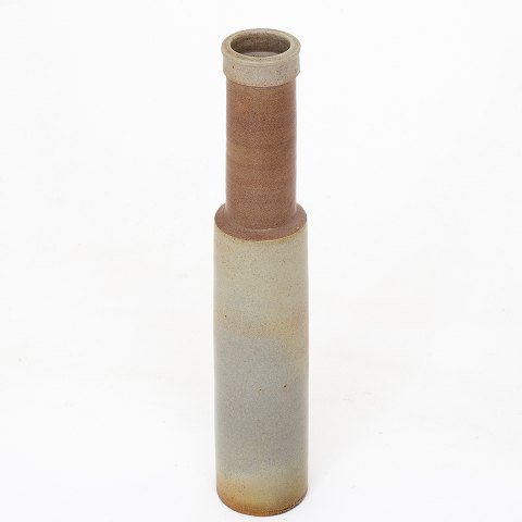 Stor vase i stentøj med grågrøn og brun glasur. Signeret.