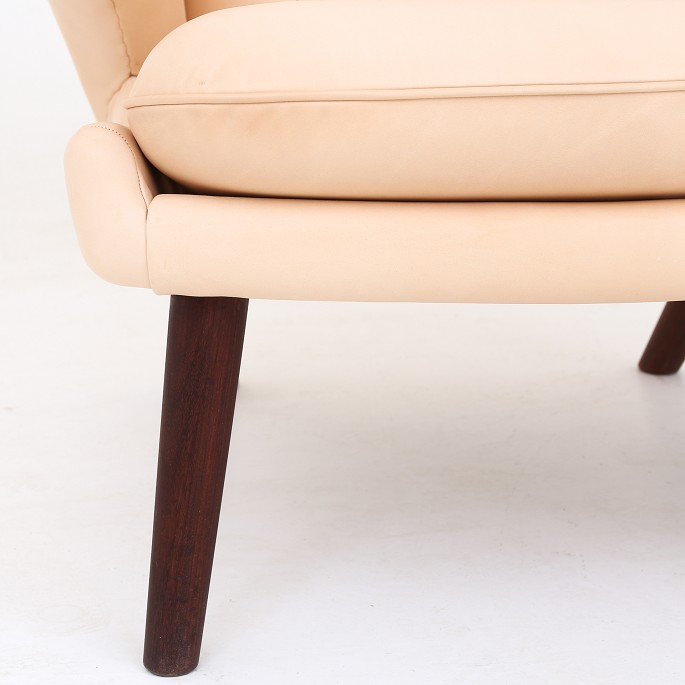 AP 19 - Reupholstered Papa Bear chair in natural leather with dark legs and paws. KLASSIK offers the Papa Bear chair in fabric or leather of your choice. Please contact us for more information.