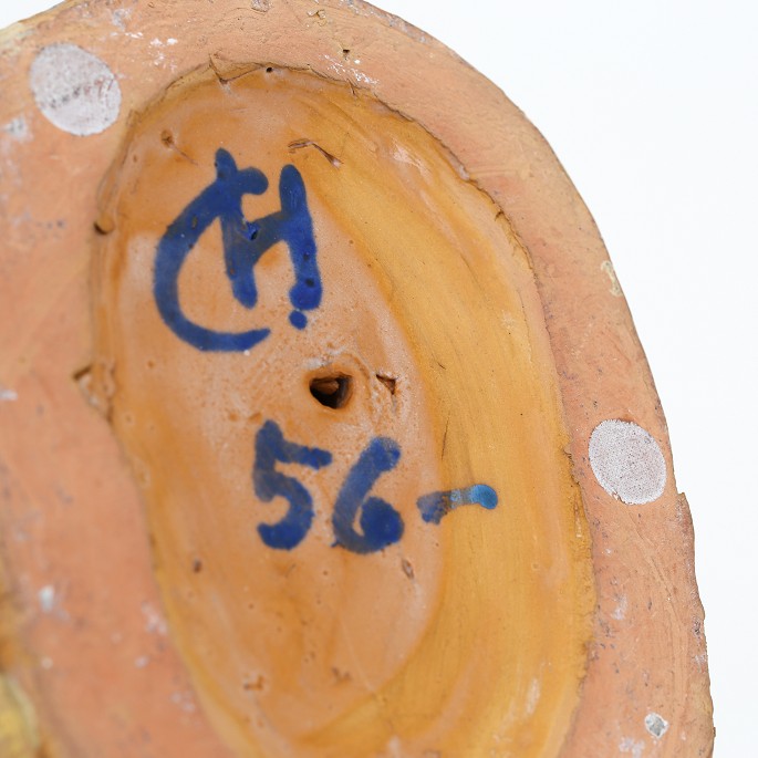 Sculpture in partially glazed pottery with the shape of a woman. Signed.