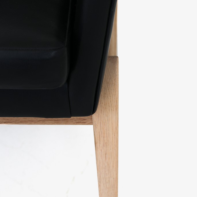 'Wing' sofa in black leather with oak frame.