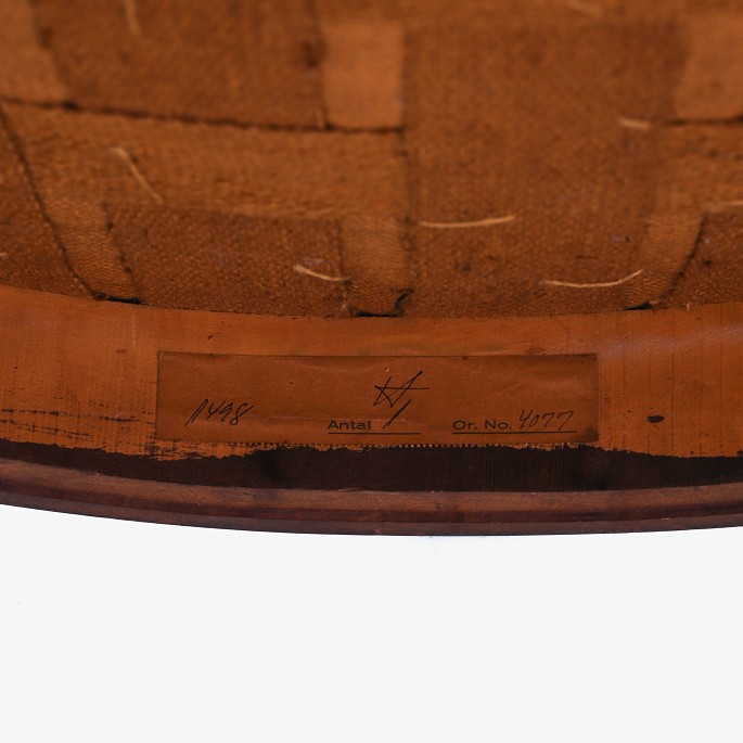 Armchair in stained beech with original patinated aniline leather and brass nails. Stamped by manufacturer.