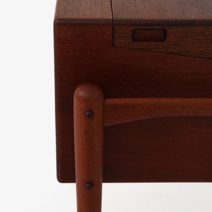 Rare sewing table in teak and maple on wheels from the 1950s.