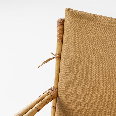 Bamboo wicker chair with cushion in Marius, Savane (Pierre Frey).