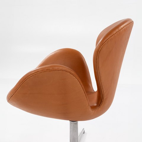 ABOUT THE ITEM: This is an original ‘The Swan’ chair by Arne Jacobsen, produced by Fritz Hansen. The chair is second-hand, but has been reupholstered in leather by our experienced upholstery workshop in Denmark. It appears as new and comes with a 2 H: 77 cm.