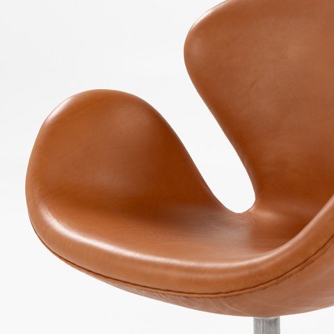 AJ 3220 - Nybetrukket 'Svanen' i Klassik Cognac anilin-læder med helstøbt fod af aluminium.