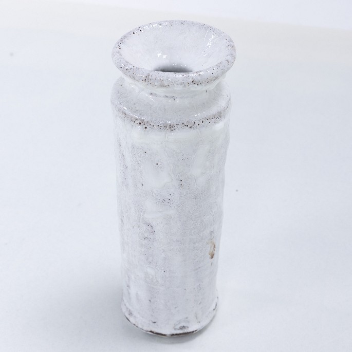 Cylindrical vase in decorated stoneware with light glaze. The stamp.