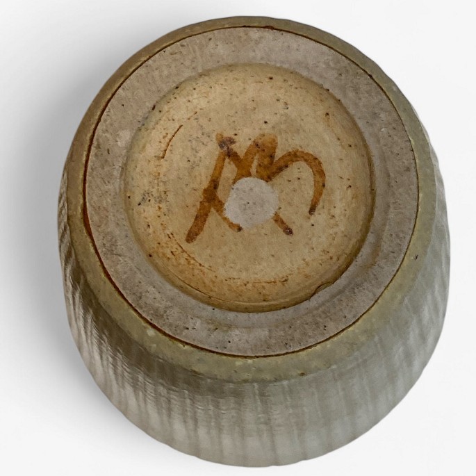 Tall fluted vase in stoneware with light glaze.