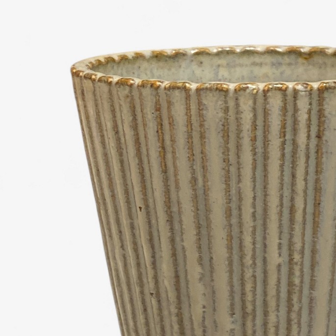 Rifled stoneware vase with light brown glaze.