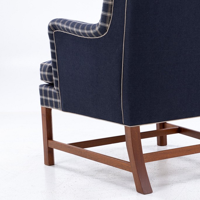 KK 6212 - Nybetrukket Øreklapstol i 'Cotil'-stof. OM MØBLET: Dette er en original 'Øreklapstol' af Kaare Klint, som er produceret hos den oprindelige producent; Rud. Rasmussen Snedkerier. Stolen er brugt, men er nybetrukket af vores erfarne polstrerværksted i Danmark.