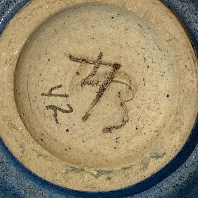 Ashtray in stoneware with blue glaze.