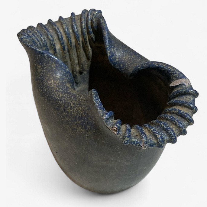 Stoneware vase with blue glaze.