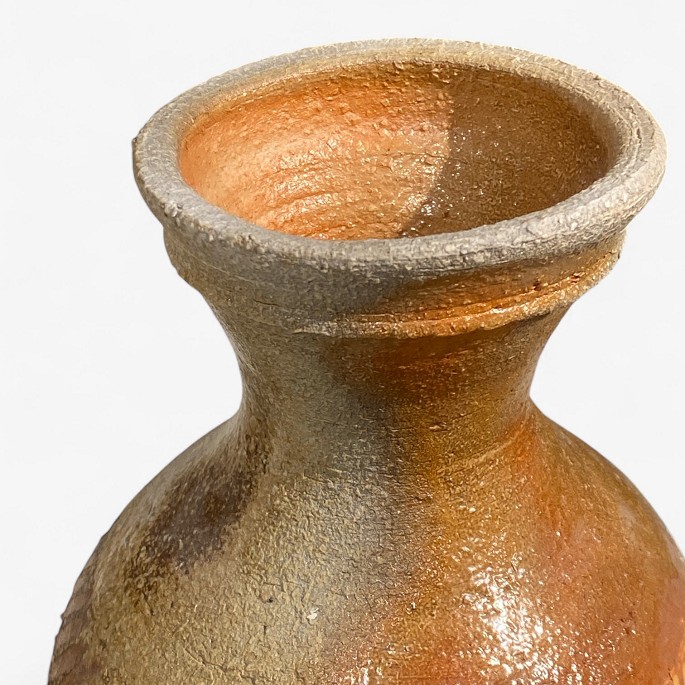 High-necked vase in stoneware with pattern.