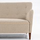 Overpolstret sofa i nyt Ecriture-tekstil (farve 0240) med kedere i naturlæder.