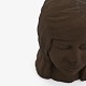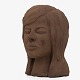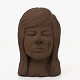 Bust of a woman's head in unglazed stoneware.