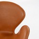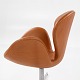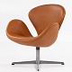 AJ 3220 - Reupholstered 'The Swan' lounge chair in Klassik Cognac aniline leather with a solid aluminium base.