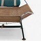 GE 225 - Early 'Flagline Chair' with green lacquered metal frame, original patinated flagline and green neck cushion and oak shoe. Designed in 1950.