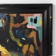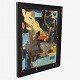 Maleri med sort træramme, hvor maling går fra lærred til ramme. Udstillet på Museum Jorn 2019. Fra kunstnerens eget bo.