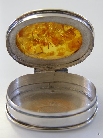 Pilleæske med Ravlåg sterling 925 L:3,3cm. B:2,9cm. Emne nummer: 10984