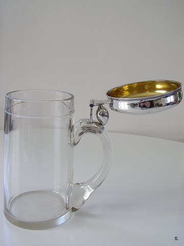 Flot Ølkrus med sølvlåg der indvendigt er forgyldt,