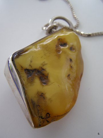 Stort Ravsmykke i rustik sølv kæde 925/Lund L: 80cm. Emne nummer: 11132