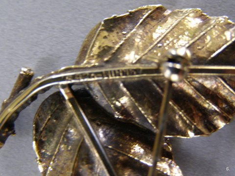 Bladformet Broche i 925 sølv belagt med guld, Leo Askhim Malling 1957-1988 Emne nummer: 11160