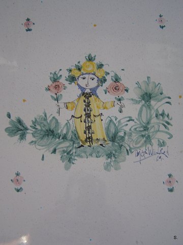 Bjørn Wiinblad Bakkebord på stand af bemalet træ H: 45 cm. Bakken der er signeret Bjørn Wiinblad 1969 H: 4 cm. L: 62 cm. og B: 44 cm. Emne nummer: 11191k