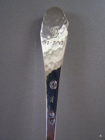 Sukkertang og Flødeske sølv med indlagt rav Flødeske L:14 cm. Sukkertang L: 12,5 cm. Emne nummer: 11340