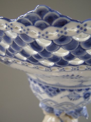 RC 1/1011 skål 1/1012 sokkel Musselmalet Helblonde Frugtskål. Tegner Arnold Krog, Modellør J. Jacobsen, Figurer C.F. Liisberg. H: 39 cm. D: 28 cm. Emne nummer: 11343
