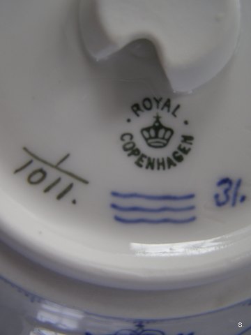 RC 1/1011 skål 1/1012 sokkel Musselmalet Helblonde Frugtskål. Tegner Arnold Krog, Modellør J. Jacobsen, Figurer C.F. Liisberg. H: 39 cm. D: 28 cm.
