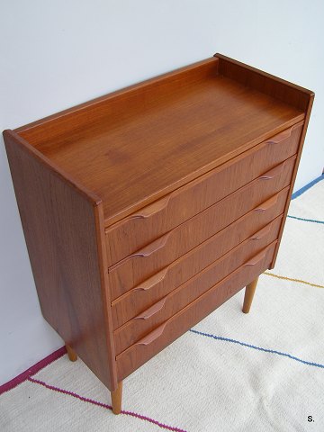 Kommode i teaktræ med 5 skuffer H: 75,5 cm. B: 60 cm. D: 30 cm. Emne nummer: 11351