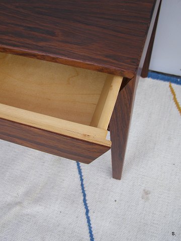 Palisander Bord med skuffe og underhylde i flet,Severin Hansen for Haslev Møbelfabrik H: 42 cm. L: 50 cm. D: 35 cm. Emne nummer: 11366