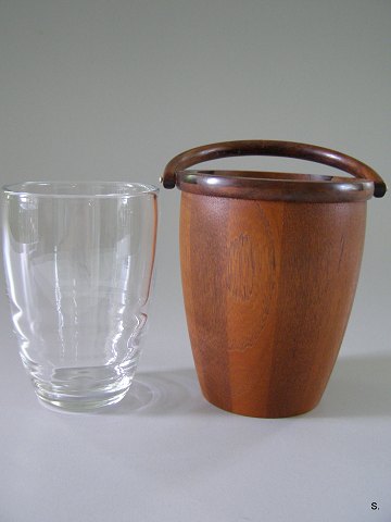 SOLGT Flot Isspand i Teak med Holmegaard glasindsats H: 18 cm. D: 15 cm. Emne nummer: 11417