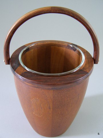 SOLGT Flot Isspand i Teak med Holmegaard glasindsats H: 18 cm. D: 15 cm. Emne nummer: 11417