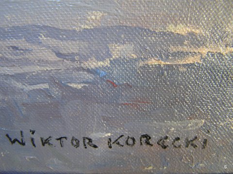 Wiktor Korecki Vinterlandskab 60*50 cm. med ramme 75,5*65,5 cm. Emne nummer: 11464