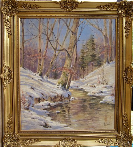Børge Ruud sign. Vinterlandskab ved Å