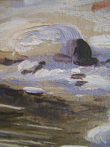 Børge Ruud sign. Vinterlandskab ved Å 65*55 cm. med ramme 83*73 cm. Emne nummer: 11506