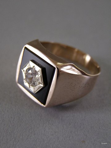 Herrering 333 med Sort Onyx og Syntetisk Safir Str. 57
