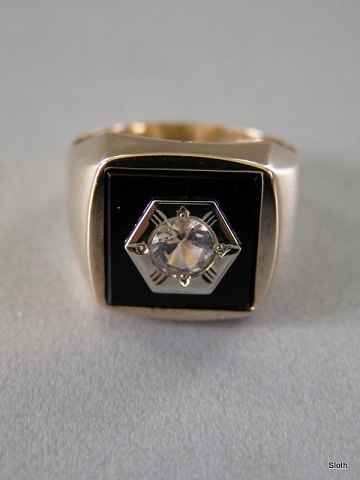 Herrering 333 med Sort Onyx og Syntetisk Safir Str. 57