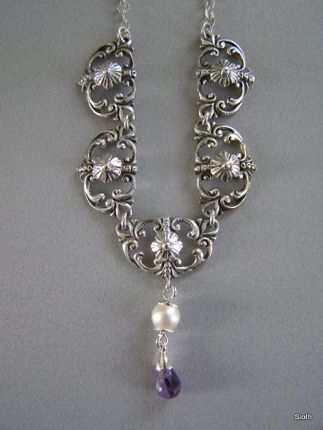 Halssmykke 925 9 g. Med Akoya Perle og Ametyst L: 46 cm
